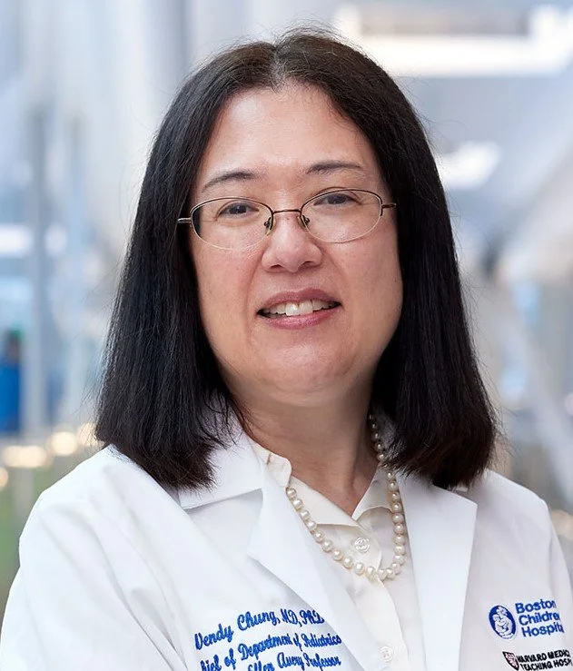Dr. Wendy Chung is a clinical and molecular geneticist and the Chief of the Department of Pediatrics at Boston Children’s Hospital and the Mary Ellen Avery Professor of Pediatrics at Harvard Medical School. Dr. Chung directs NIH funded research programs in human genetics of pulmonary hypertension, breast cancer, obesity, diabetes, autism, birth defects including congenital diaphragmatic hernia and congenital heart disease. She has led studies to improve newborn screening for spinal muscular atrophy, Duchenne muscular dystrophy, and now GUARDIAN (Genomic Uniform screening Against Rare Diseases In All Newborns). She is a national leader in the ethical, legal, and social implications of genomics. She was the recipient of the Rare Impact Award from the National Organization of Rare Disorders, and is a member of the National Academy of Medicine and the American Academy of Physicians. Dr. Chung received her B.A. in biochemistry from Cornell University, her M.D. from Cornell University Medical College, and her Ph.D. from The Rockefeller University in genetics.