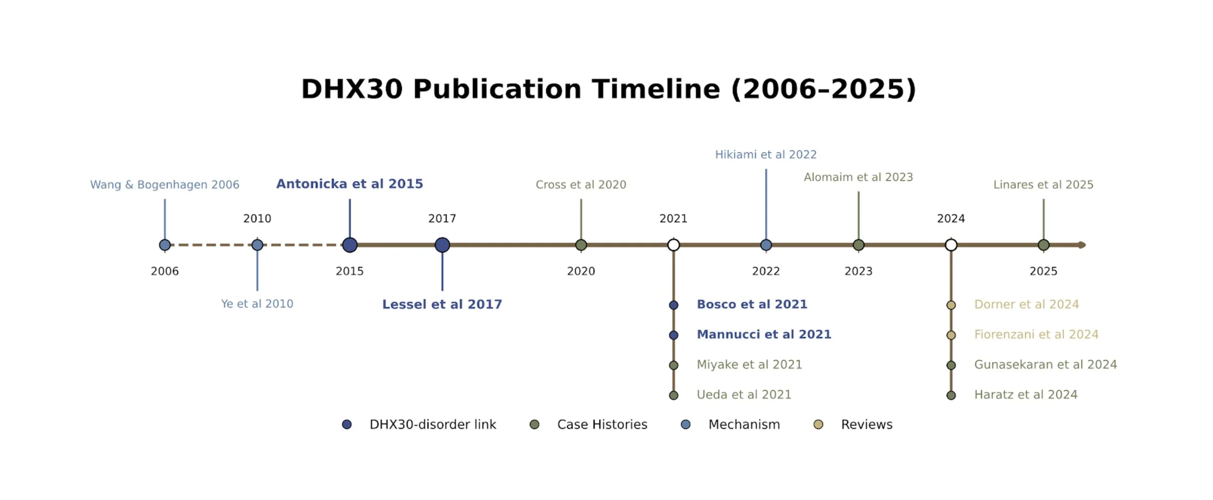 Click or tap to enlarge this timeline of DHX30 research publications.